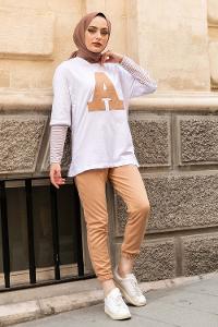 Lamelif Balance Armalı Çımalı İkili Tesettür Takım Camel