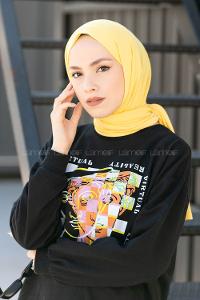 Lamelif Neon Sarı Penye Şal