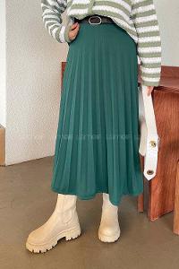 Lamelif Cep Detaylı Kloş Keten Etek Mint Yeşili