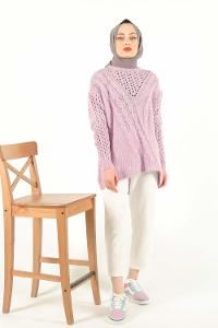 Lamelif Kol Drop Detaylı Kazak Lacivert