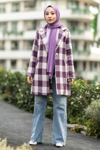 Modalamelif Alara Tek Düğme Detaylı Çift Cepli Kaban Mor