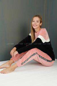 Modalamelif Alt Yanı Şeritli Polar Takım Siyah-Pudra