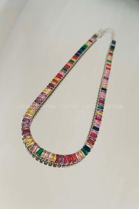 Lamelif Gold Çelik Çokrenkli Kristal Taşlı Kararmaz Kolye