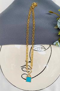 Modalamelif Altın Zincir Mavi Kilit Kolye