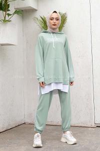 Lamelif Fermuarlı Kapüşonlu Oysho Takım Çağla Yeşili