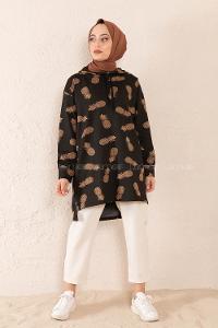Modalamelif Ananas Baskılı Tunik Siyah