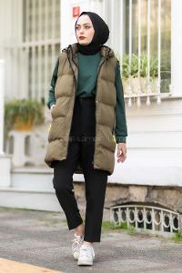 Modalamelif Arkası Lastikli Şişme Yelek Haki