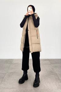 Modalamelif Arkası Lastikli Şişme Yelek Taş Rengi