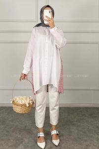 Modalamelif Arkası Pötikare Garnili Gömlek Gül