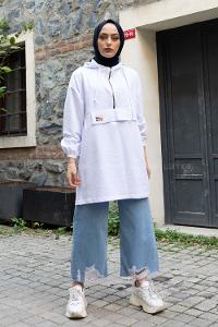 Modalamelif Arma Baskılı Kapşonlu Tunik Beyaz