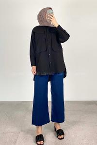 Modalamelif Asimetrik Bombe Cep Detaylı Gömlek Siyah