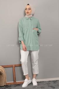 Lamelif Kol Detaylı Gömlek Zümrüt
