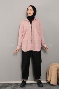 Modalamelif Asimetrik Cepli Yıkamalı Gömlek Pudra