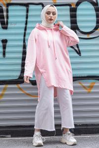 Lamelif Kapüşonlu Salaş Sweatshirt Şeker Pembesi