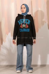 Lamelif Kapüşonlu Salaş Sweatshirt Siyah