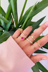 Lamelif Gold 7li Kombin Kelebek Yüzük Seti