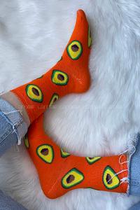 Modalamelif Avakado İşlemeli Soket Çorap Oranj