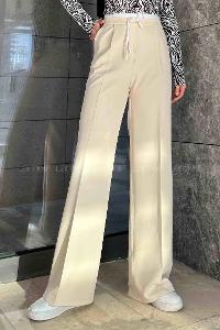 Lamelif Bağcık Detaylı Garnili Pantolon Krem