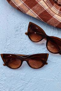 Lamelif Sütlü Kahve Çerçeve Kahve Cam Cat Eye Güneş Gözlüğü