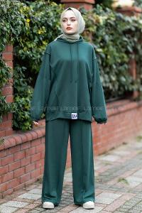 Lamelif Sırt Fermuar Detaylı Pantolonlu Takım Haki