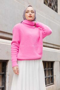 Modalamelif Balıkçı Yaka Düz Renk Kazak Pembe