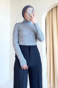 Modalamelif Balıkçı Yaka Fitilli Kazak Gri
