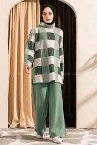 Modalamelif Balıkçı Yaka Kareli Takım Çağla Yeşili