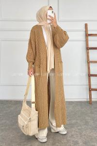 Modalamelif Balon Kol Cep Detaylı Triko Hırka Sütlü Kahve