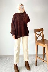 Modalamelif Balon Kol Düz Basic Kazak Acı Kahve