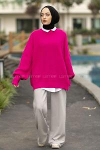 Modalamelif Balon Kol Düz Basic Kazak Fuşya