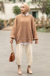 Lamelif Kol Drop Detaylı Kazak Acı Kahve