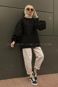 Lamelif Yırtmaç Detaylı Sweat Siyah