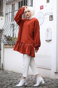 Modalamelif Balon Kol Fırfır Detaylı Tunik Kiremit