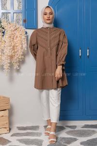 Modalamelif Balon Kol Gipeli Gömlek Tunik Acı Kahve