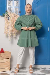 Modalamelif Lopez Balon Kol Tunik Yağ Yeşili
