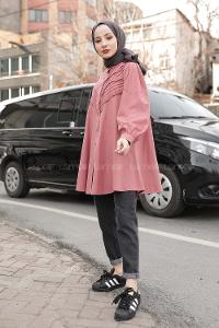 Modalamelif Balon Kol Gipeli Gömlek Tunik Gül