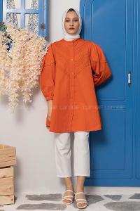 Modalamelif Balon Kol Gipeli Gömlek Tunik Oranj