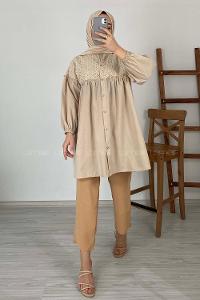 Modalamelif Balon Kol Güpürlü Tunik Taş