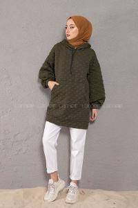 Modalamelif Balon Kol Jakarlı Sweatshirt Haki