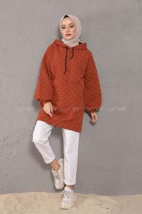 Modalamelif Balon Kol Jakarlı Sweatshirt Kiremit