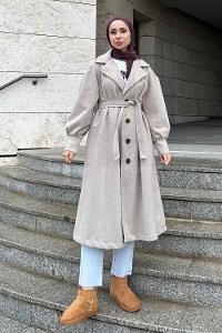 Lamelif Balon Kol Kaşe Kaban Vizonrengi