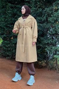 Lamelif Kol Kemerli Trençkot Camel