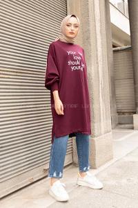 Modalamelif Balon Kol Love Tunik Patlıcan Moru