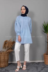 Modalamelif Balon Kol Önü Pileli Tunik Açık Mavi