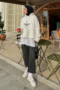 Lamelif Kapüşonlu Salaş Sweatshirt Antrasit