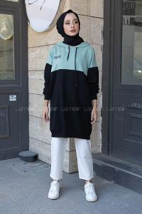Lamelif Kapşonlu Oversize Yan Cepli Sweat Siyah