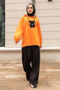 f Bear İşlemeli Salaş Kapüşonlu Takım Turuncu