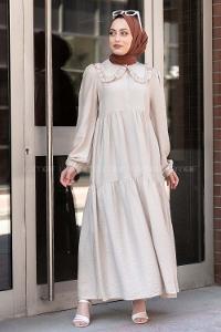 Modalamelif Bebe Yaka Fırfırlı Elbise Taş Rengi