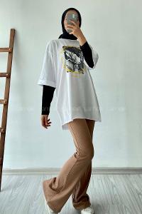Modalamelif Been Talkıng Yazılı Baskılı Yanı Yırtmaçlı T-Shirt Beyaz