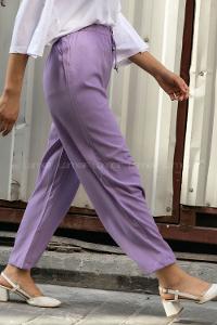 Modalamelif Bel Bağcıklı Bol Paça Krınkil Pantolon Lila